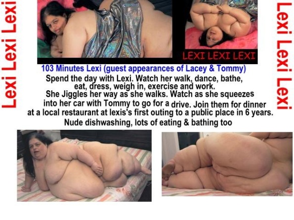| Spend the day with Lexi. Watch her walk, dance,bathe,eat,dress,weigh in, and work. She as she juggles her way to her mailbox. Watch as she squuezes into her car with Tommy to go for a drive. Join them for dinner at a local restaurant at lexi's first outing to a public place in 6 years. |